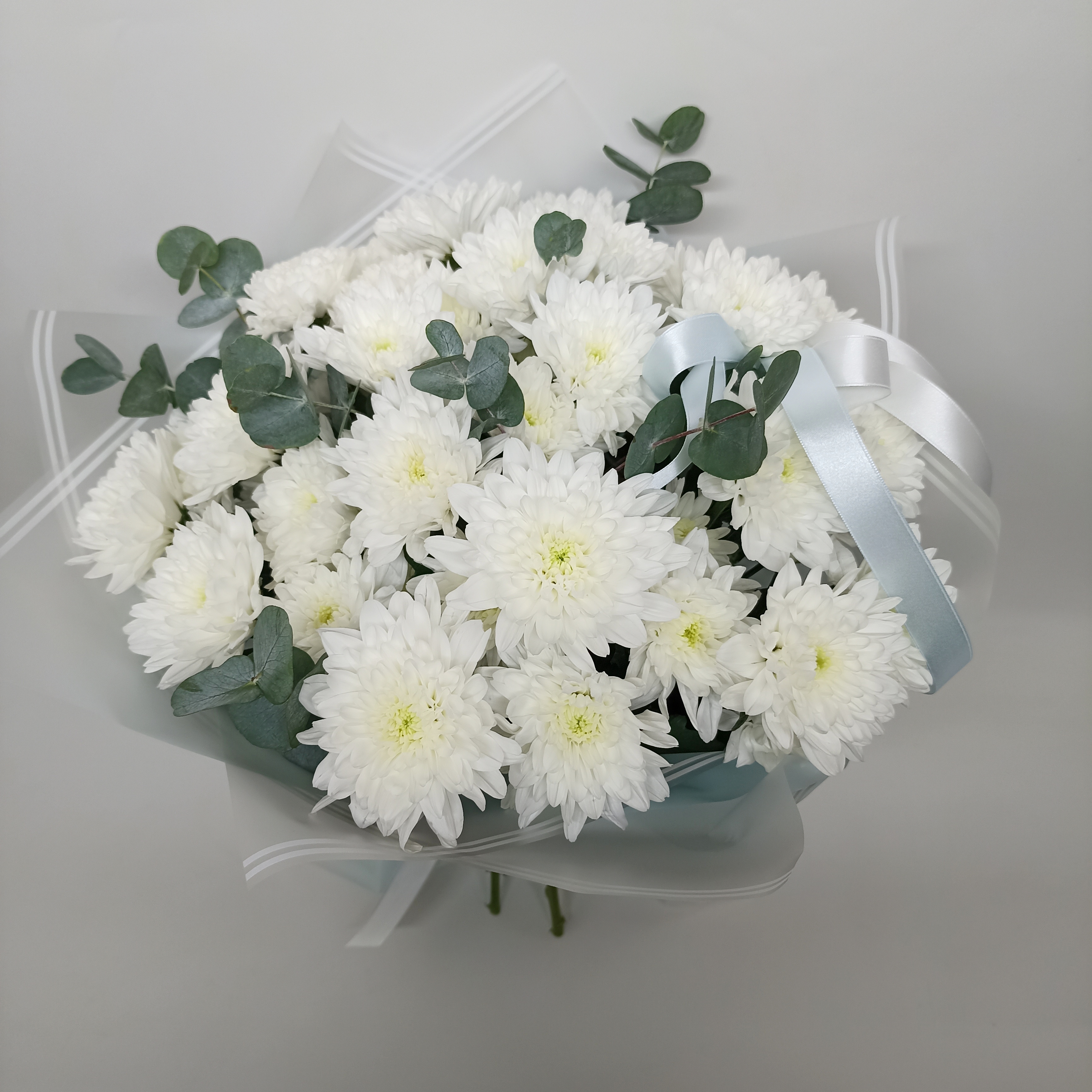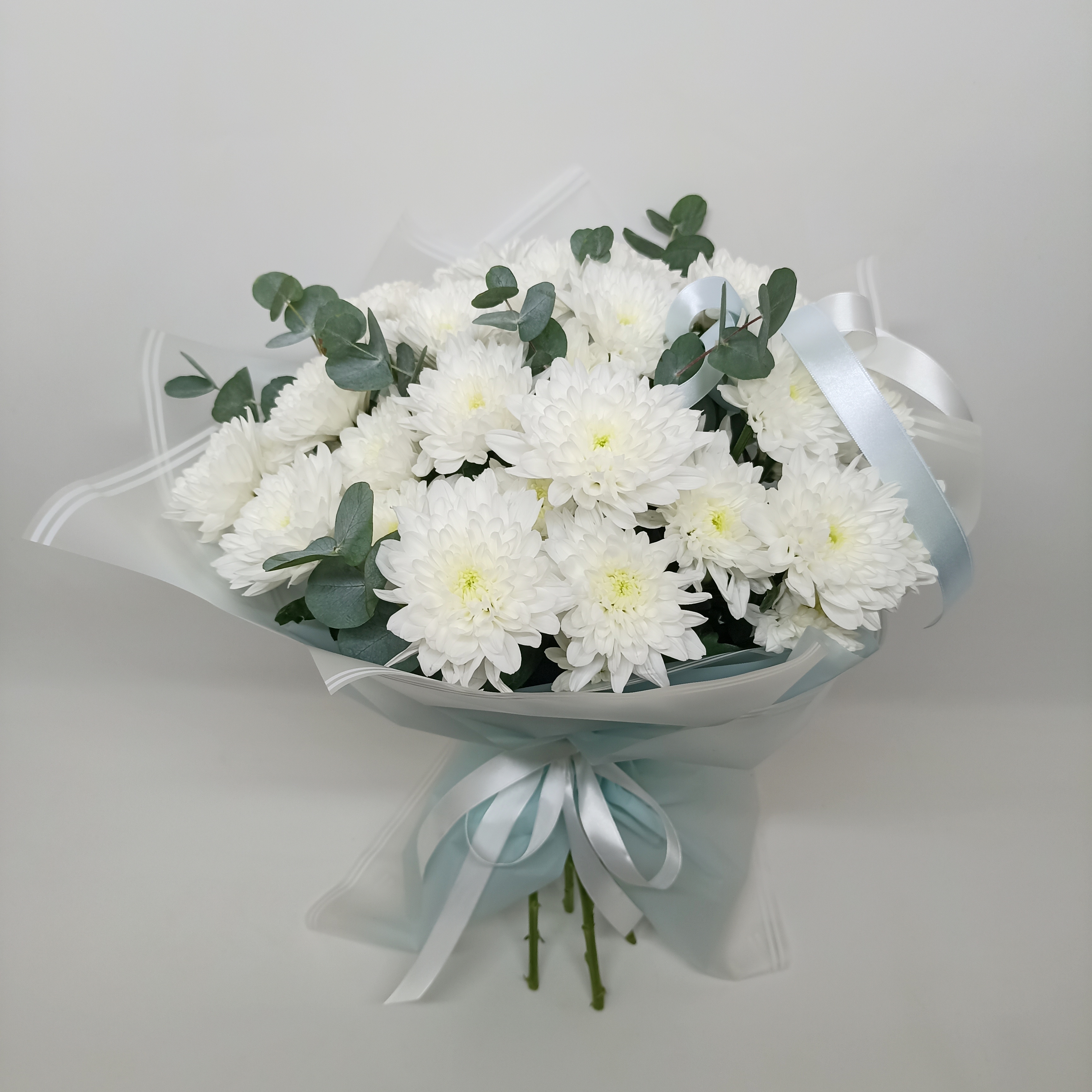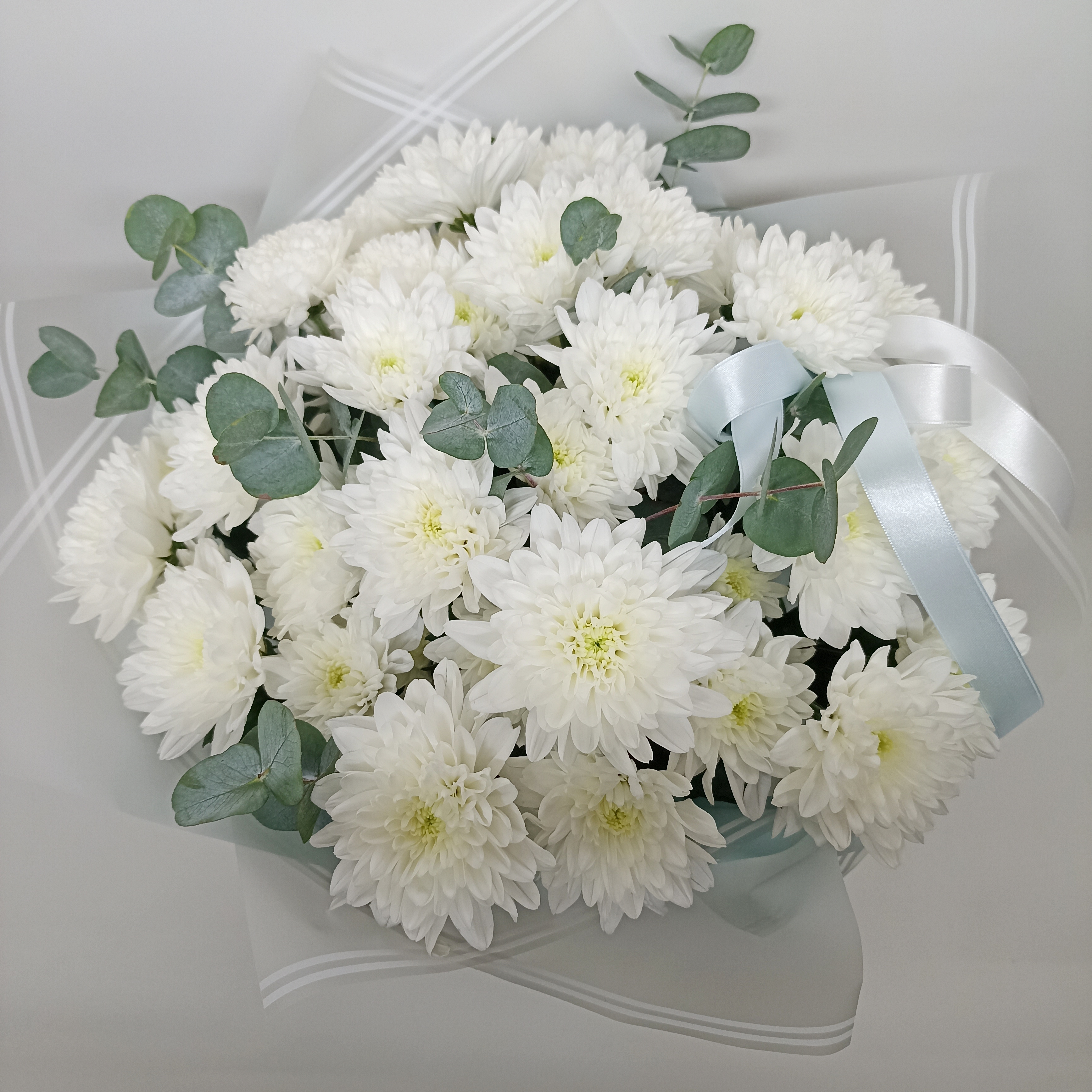 Подарите близким красоту и свежесть природы! Букет «Анна» — изысканный ансамбль белых хризантем и благородного эвкалипта. Нежная упаковка из корейской плёнки и изящные атласные ленты подчеркнут утонченность композиции. Доставьте радость близкому человеку, выбрав букет, который говорит о ваших чувствах красноречивее слов!