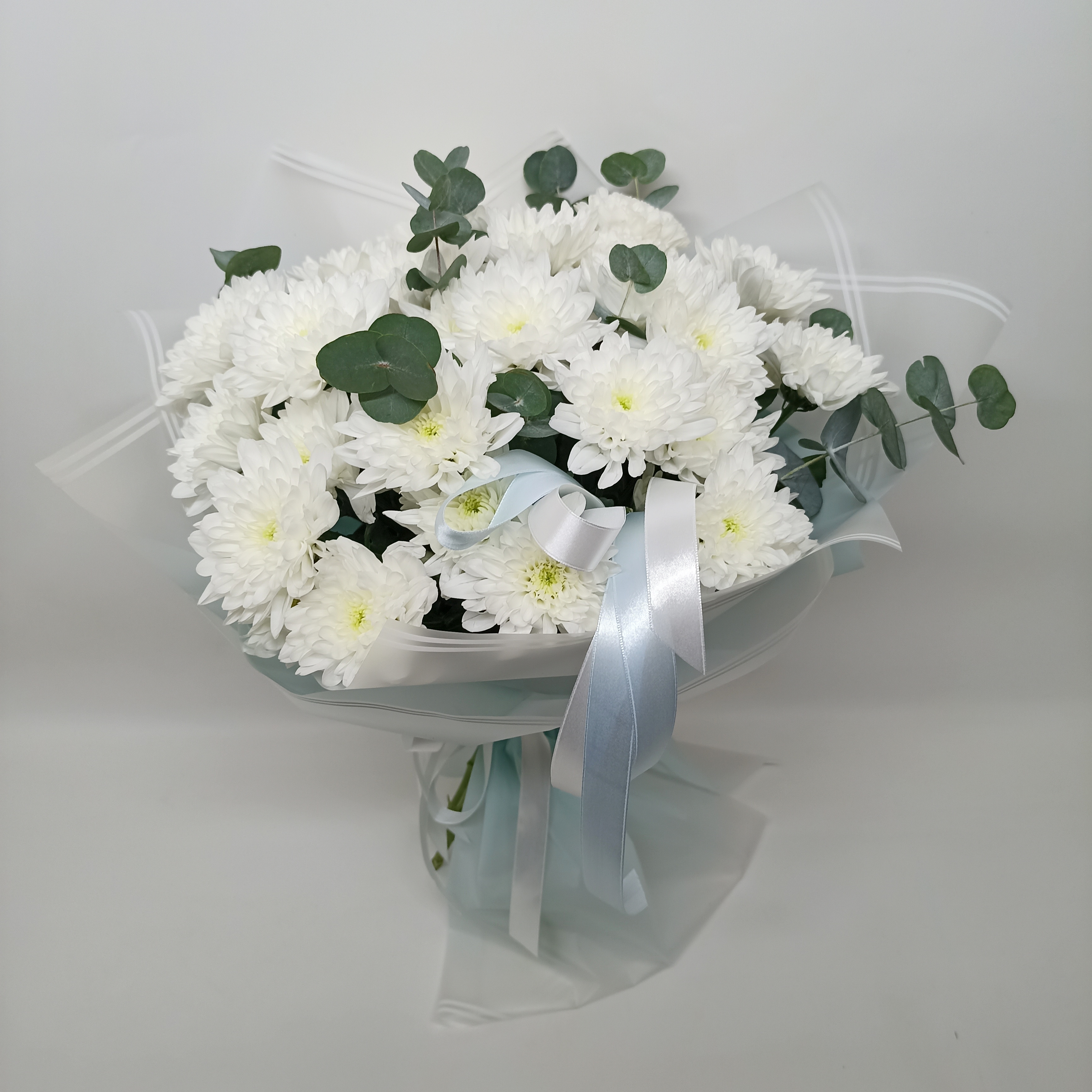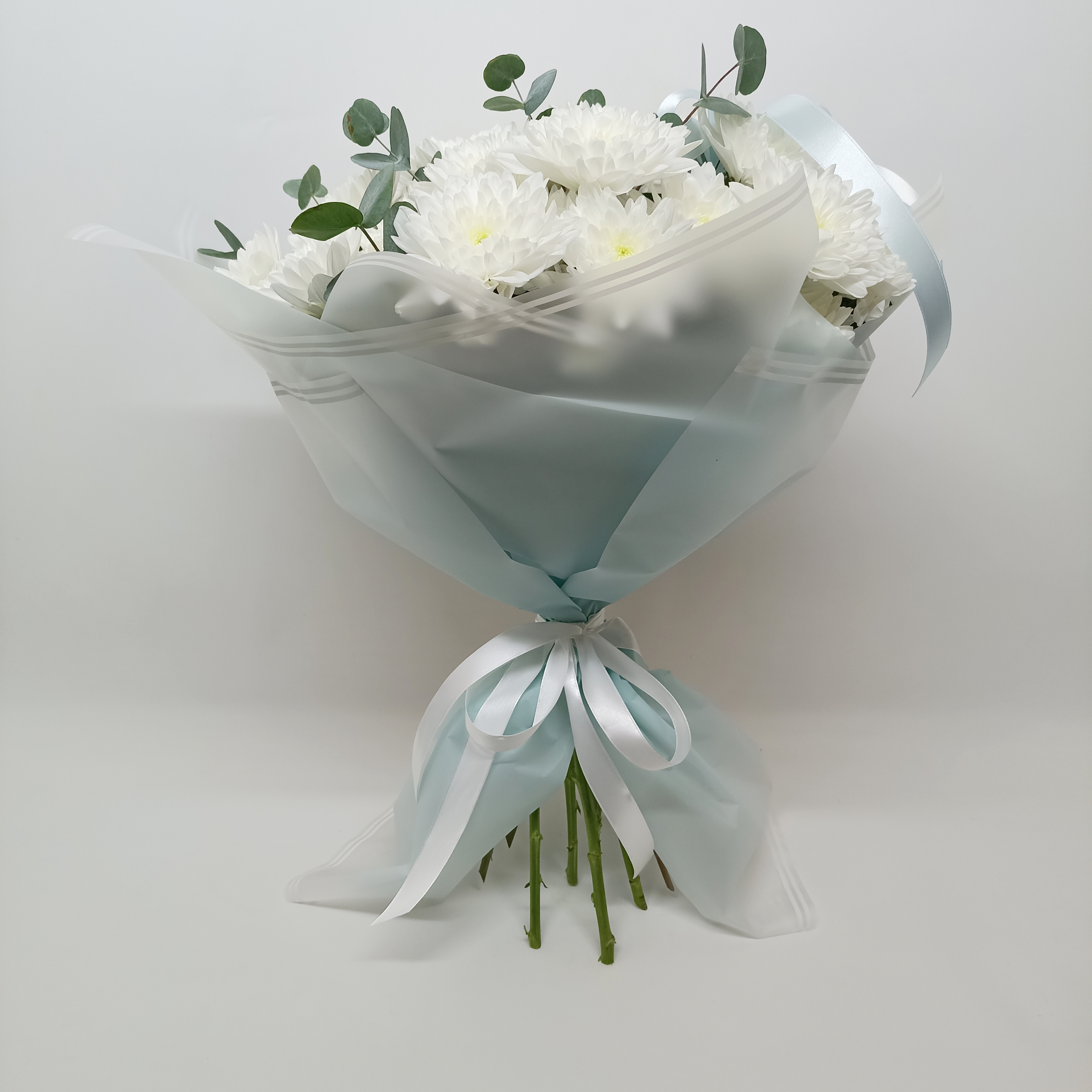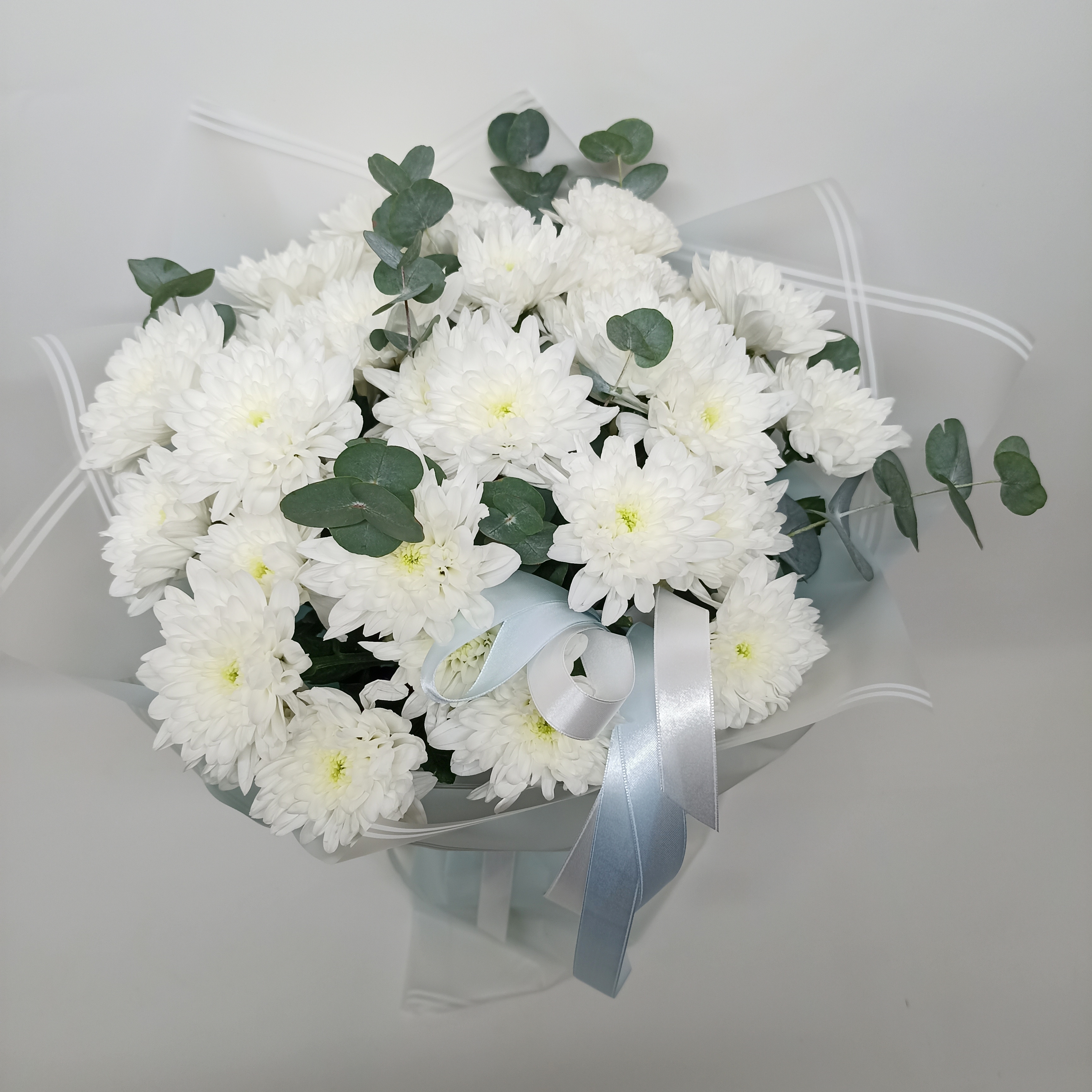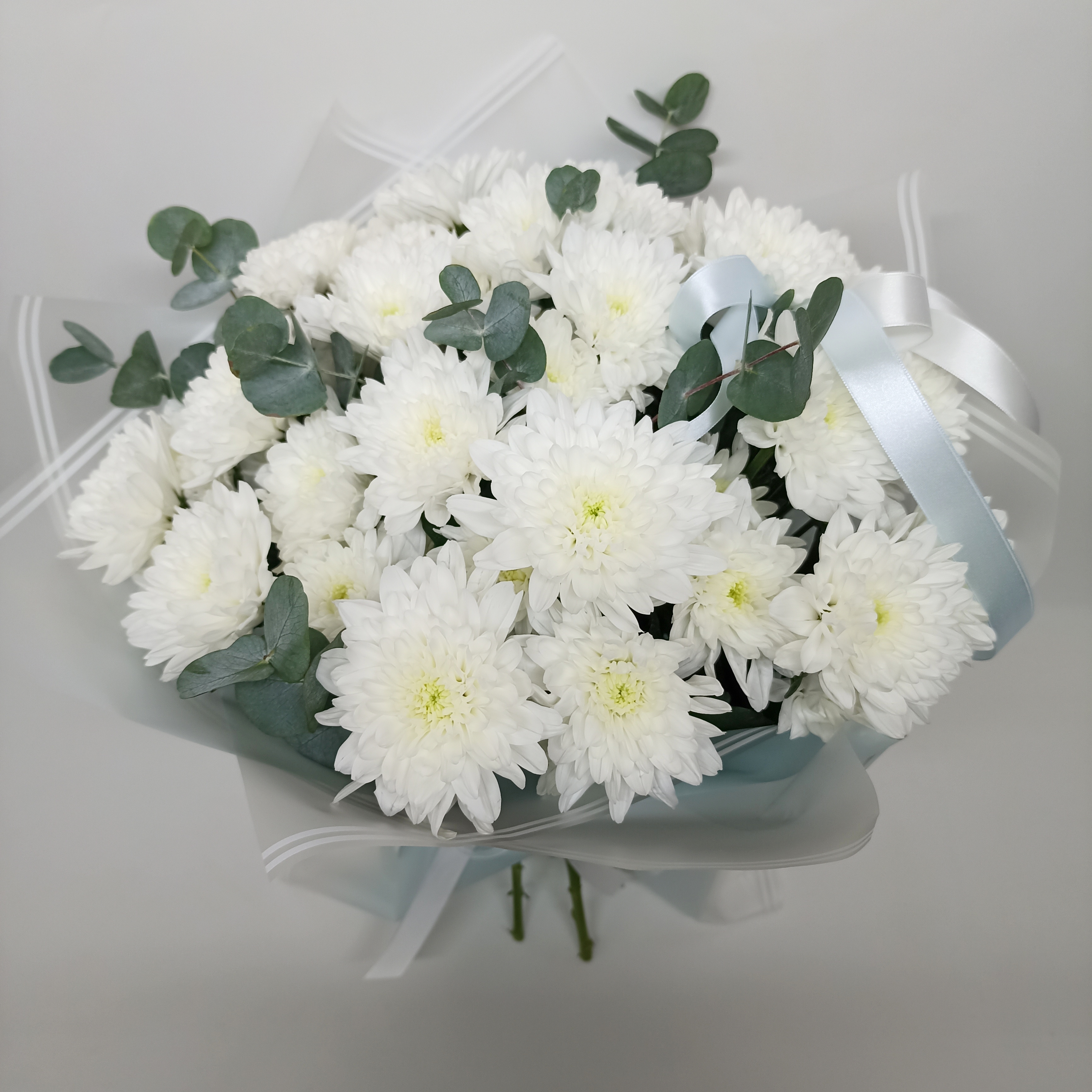Подарите близким красоту и свежесть природы! Букет «Анна» — изысканный ансамбль белых хризантем и благородного эвкалипта. Нежная упаковка из корейской плёнки и изящные атласные ленты подчеркнут утонченность композиции. Доставьте радость близкому человеку, выбрав букет, который говорит о ваших чувствах красноречивее слов!